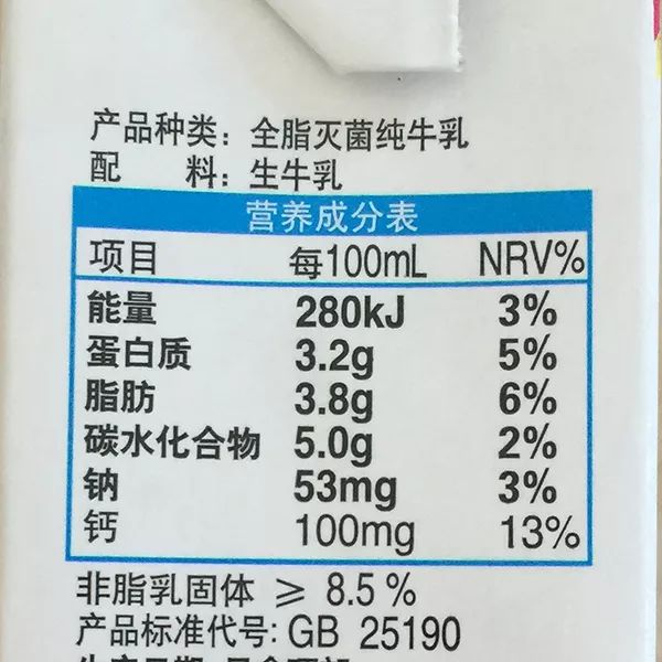 舉個例子:像這盒牛奶的標簽,上邊是每100g熱量是280KJ,但是一換算,除以4.186其實只有大約66.89卡路里,那如果是脫脂牛奶熱量就更低了。